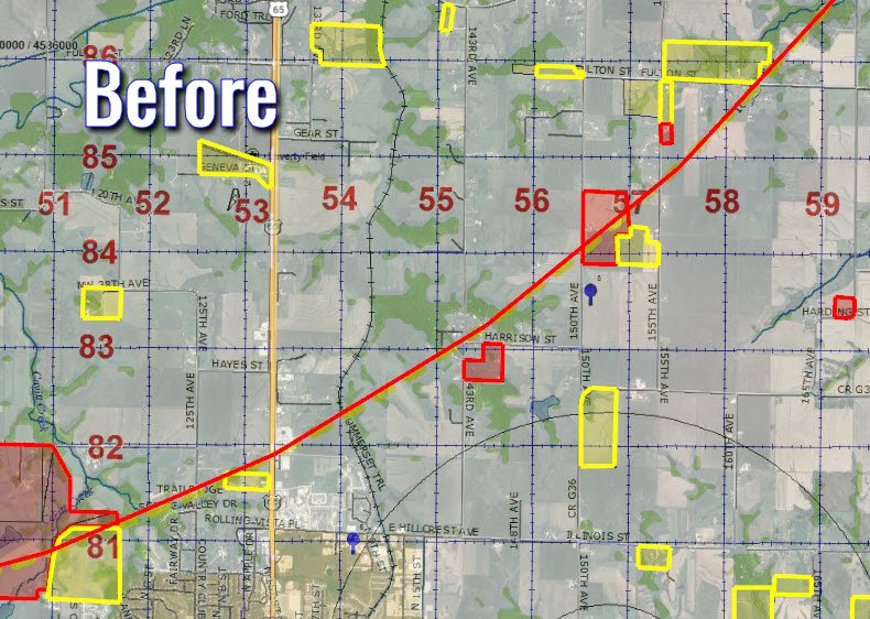We have two new yellow zones and one reduced yellow area. Here are the before and afters.